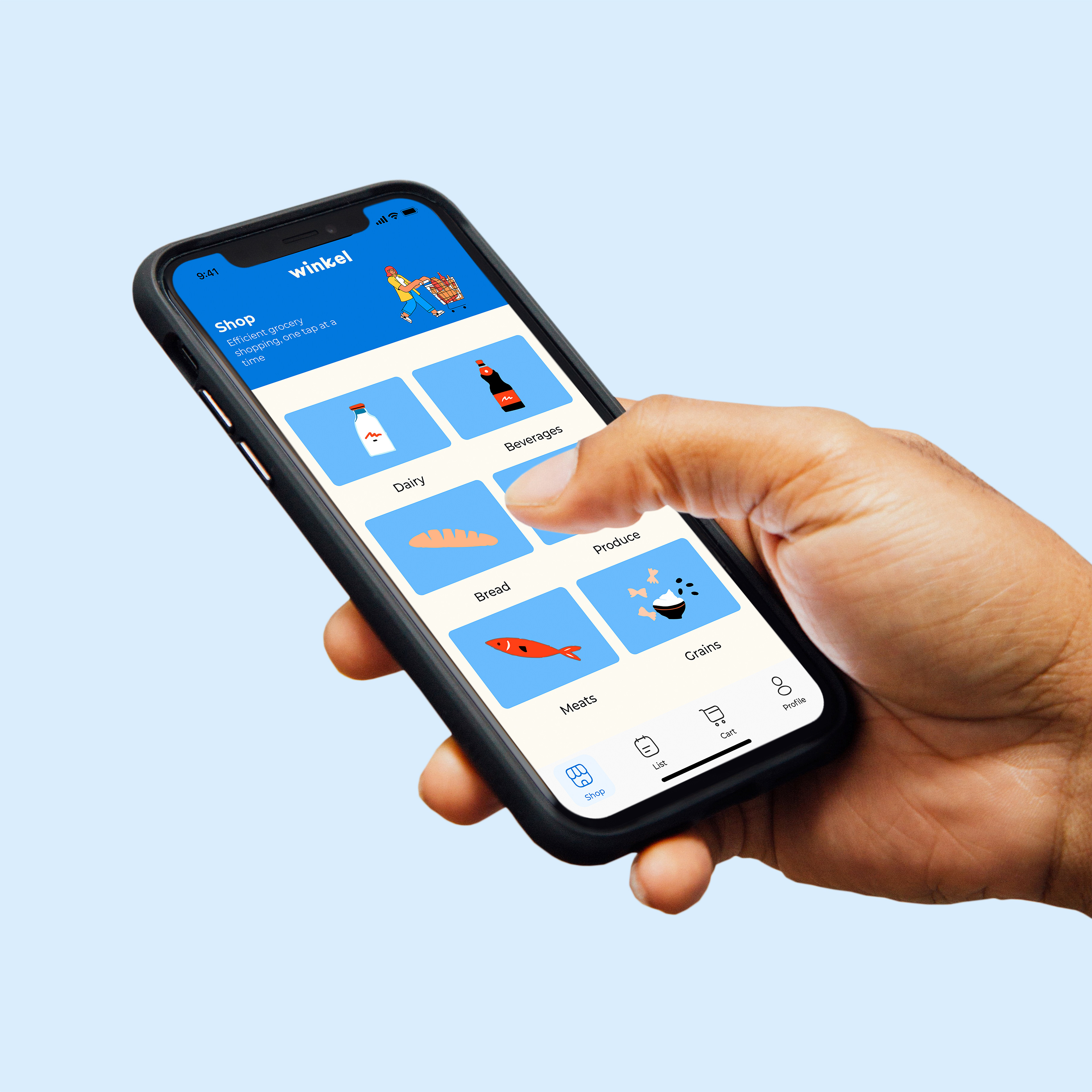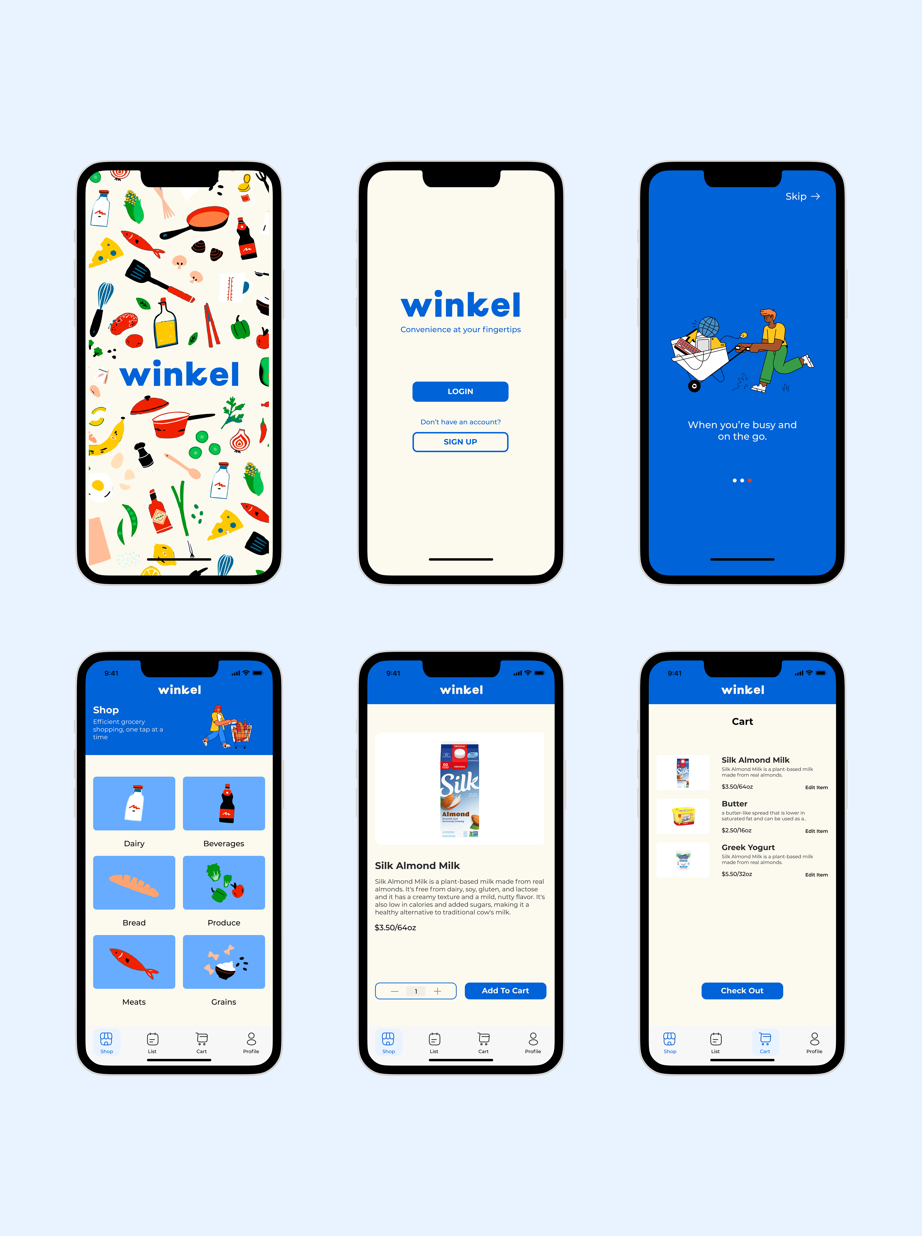 I led the art direction, UX/UI design, and logo for Winkel, a digital grocery shopping app designed for busy working professionals. Working alongside UX designers and researchers, I helped bring the app to life with an intuitive interface and seamless navigation, making it simple for users to find and purchase what they need. The design focuses on convenience and efficiency, providing a smooth experience for everyone from busy professionals to parents.